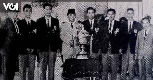 Presiden Soekarno menerima kontingen Indonesia yang menjuaraiThomas Cup tahun 1961. (Dok PBSI)