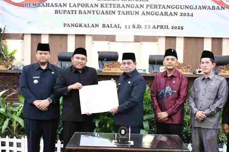 Selain itu, lanjut dia, DPRD Banyuasin juga mengapresiasi atas pembangunan, pelayanan, hingga prestasi-prestasi yang telah dicapai oleh Pemerintah Daerah Kabupaten Banyuasin selama Tahun 2024. “Semoga ke depan Prestasi yang telah diraih dapat ditingkatkan, dikembangkan dan dipertahankan tidak hanya menjadi kebangaan semata bagi Daerah akan tetapi diharapkan memberikan Kontribusi yang nyata bagi Peningkatan Pelayanan dan Kesejahteraan Masyarakat Kabupaten Banyuasin,” ucapnya
