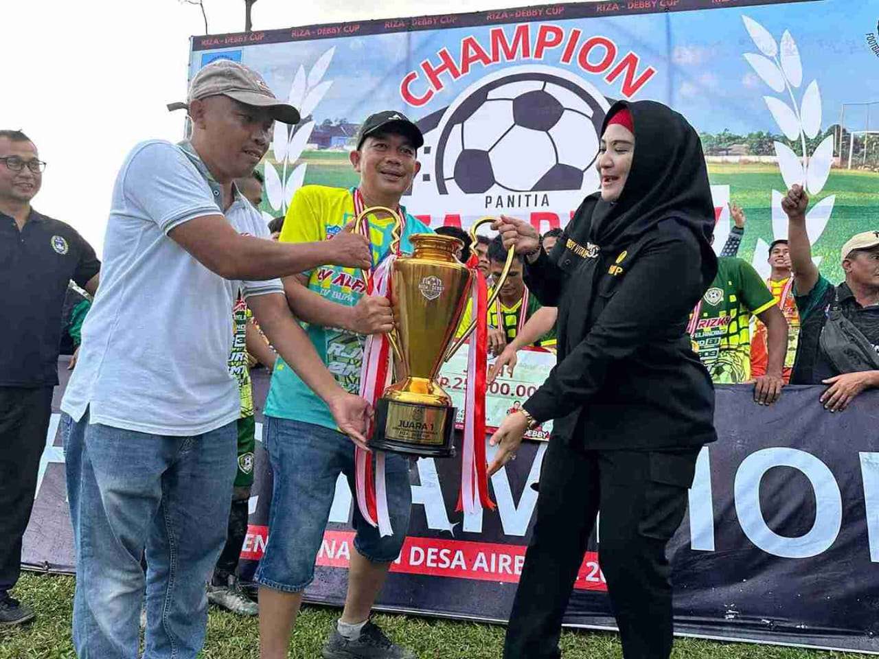 Wabup Debby menyampaikan apresiasi dan terima kasih kepada panitia Turnamen Sepak Bola Bupati Riza – Debby CUP Open Turnamen 2024 Desa Airbara karena telah menyelenggarakan turnamen yang sangat seru tersebut sehingga berjalan lancar dan sukses dari awal sampai akhir.