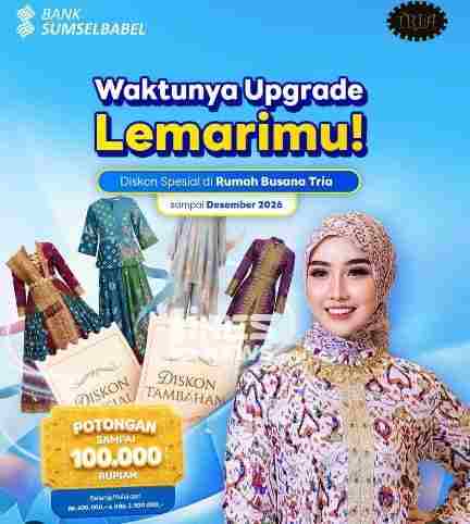 Segera kunjungi Rumah Busana Tria dan lakukan transaksi menggunakan layanan Bank Sumsel Babel untuk mendapatkan diskon yang Anda inginkan.