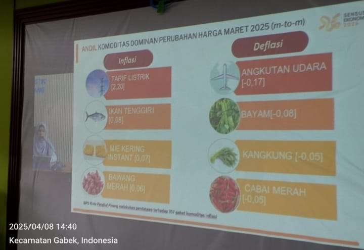 Dalam uraiannya, Kepala BPS Pangkalpinang menyebutkan kelompok penyumbang utama andil inflasi (m-to-m) Maret 2025 ialah tarif listrik inflasi 2,20, ikan tenggiri 0,08, mie kering instant 0,07, bawang merah 0,06, sigaret kretek mesin 0,27, kopi bubuk 0,29, angkutan udara 0,019 minyak goreng 0,16. Sementara itu deflasi angkutan udara -0,017, bayam -0,08 kangkung -0,05 , cabai merah -0,05, beras -0,39, ikan kerisi -0,07 cabai merah -0,07.