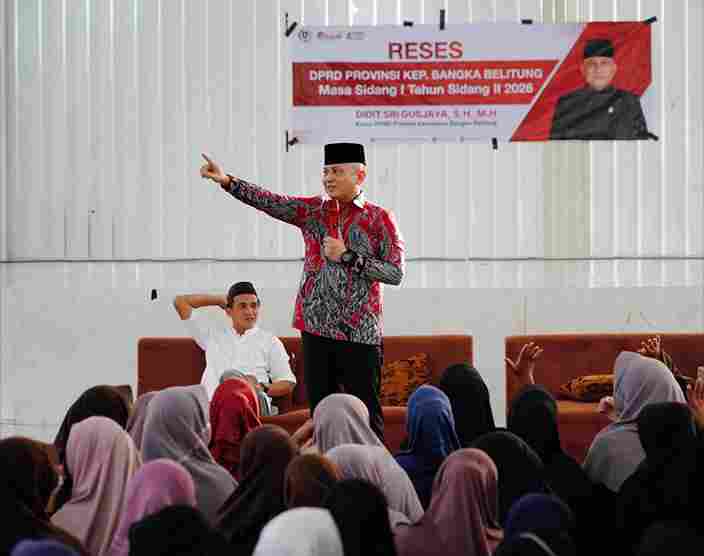 KOBA (realita.news) — Memanfaatkan masa reses I masa Sisang II tahun 2026, Ketua DPRD Bangka Belitung Didit Srigusjaya mengunjungi Pondok Pesantren (Ponpes) Al Muhajirin, Koba, Kabupaten Bangka Tengah, Minggu (18/1/2026). Ratusan santri dan santriwati antusias menyambut kedatangan Politisi PDI Perjuangan ini.