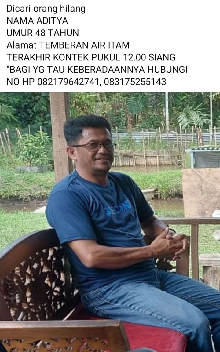 PANGKALPINANG (realita.news) — Adityawarman, wartawan satu media online di Pangkalpinang dilaporkan sudah dua hari, sejak Kamis tanggal 7 Agustus 2025 pukul 12.45 WIB, kehilangan kontak dan tidak bisa dihubuungi pihak keluarga ataupun teman teman wartawan di Bangka Belitung.