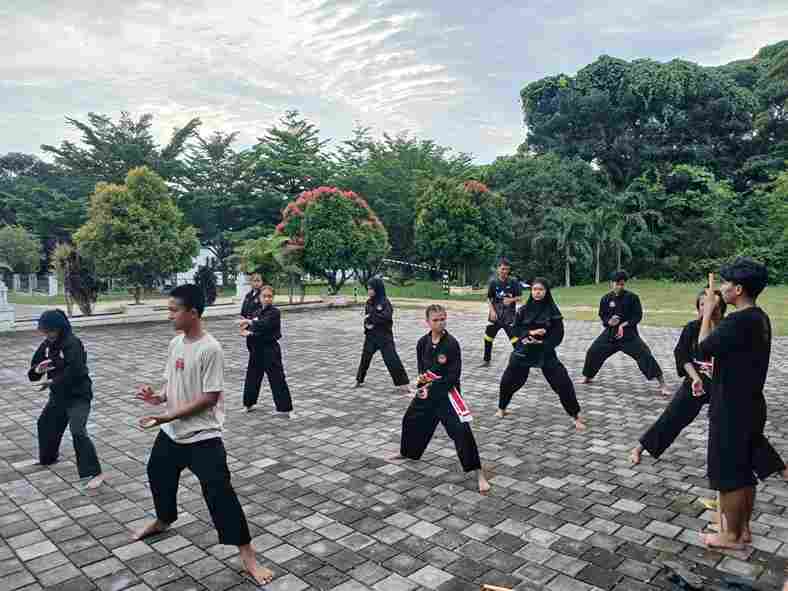 Para atlet Pencak Silat Perguruan Satria Muda Indonesia tampak antusias berlatih di Halaman Wisma Majapahit, Mentok Kabupaten Bangka Barat. Mereka telah menorehkan banyak prestasi dalam berbagai kompetisi silat.