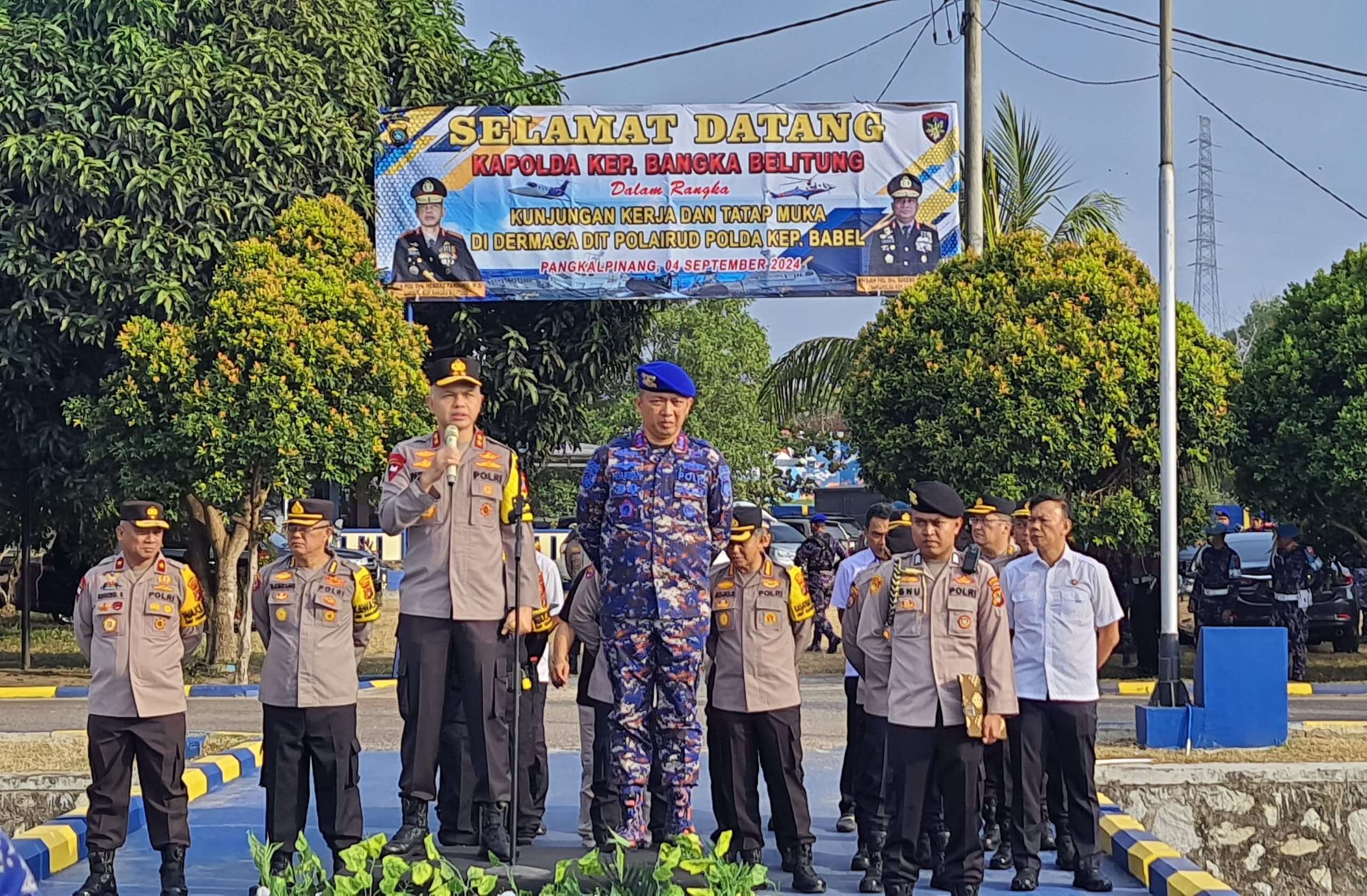 BANGKA – Kapolda Kepulauan Bangka Belitung, Irjen Pol Hendro Pandowo, melakukan kunjungan kerja ke Dermaga Sandar Direktorat Polairud di Desa Air Anyir, Kabupaten Bangka, Rabu (4/9) pagi.