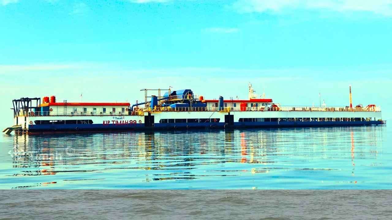 Kapal Isap Produksi 99 milik PT Timah yang tengah beroperrasi di Perairan Kundur, Kepulauan Riau. (Foto www.timah.com)