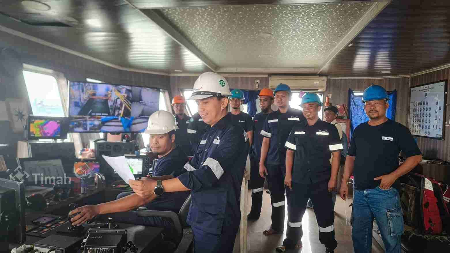 Kru Kapal Isap Produksi (KIP) 99 milik PT Timah yang tengah beroperasi di Perairan Kundur, Kepulauan Riau terus mencari inovasi lalu mengujinya untuk meningkatkan produksi. (foto.timah.com)