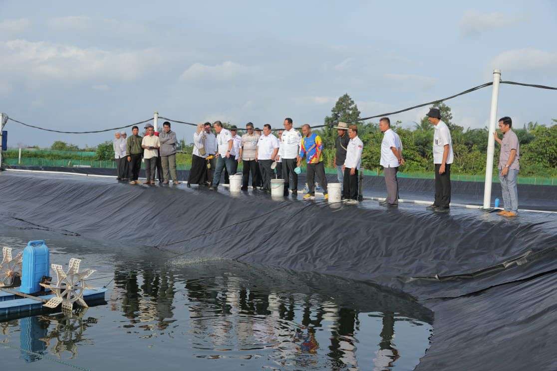 Sesampainya di lokasi, Penjabat Gubernur Sugito beserta rombongan diajak untuk meninjau langsung 5 kolam tambak ikan nila, dan lele di mana setiap kolamnya berukuran 40×40 meter. Di sela-sela peninjauan tambak ikan tersebut, ia juga turut menebar pakan ikan ke dalam kolam tambak.