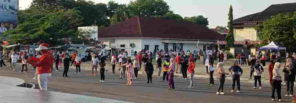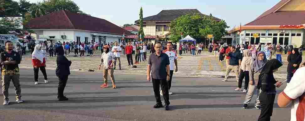 PANGKALPINANG – Pemerintah Kota Pangkalpinang menggelar kegiatan Senam Kolaboratif yang diikuti seluruh Aparatur Sipil Negara (ASN) di lingkungan Pemkot Pangkalpinang bertempat di halaman Kantor Walikota, Jumat, 8/8-2025