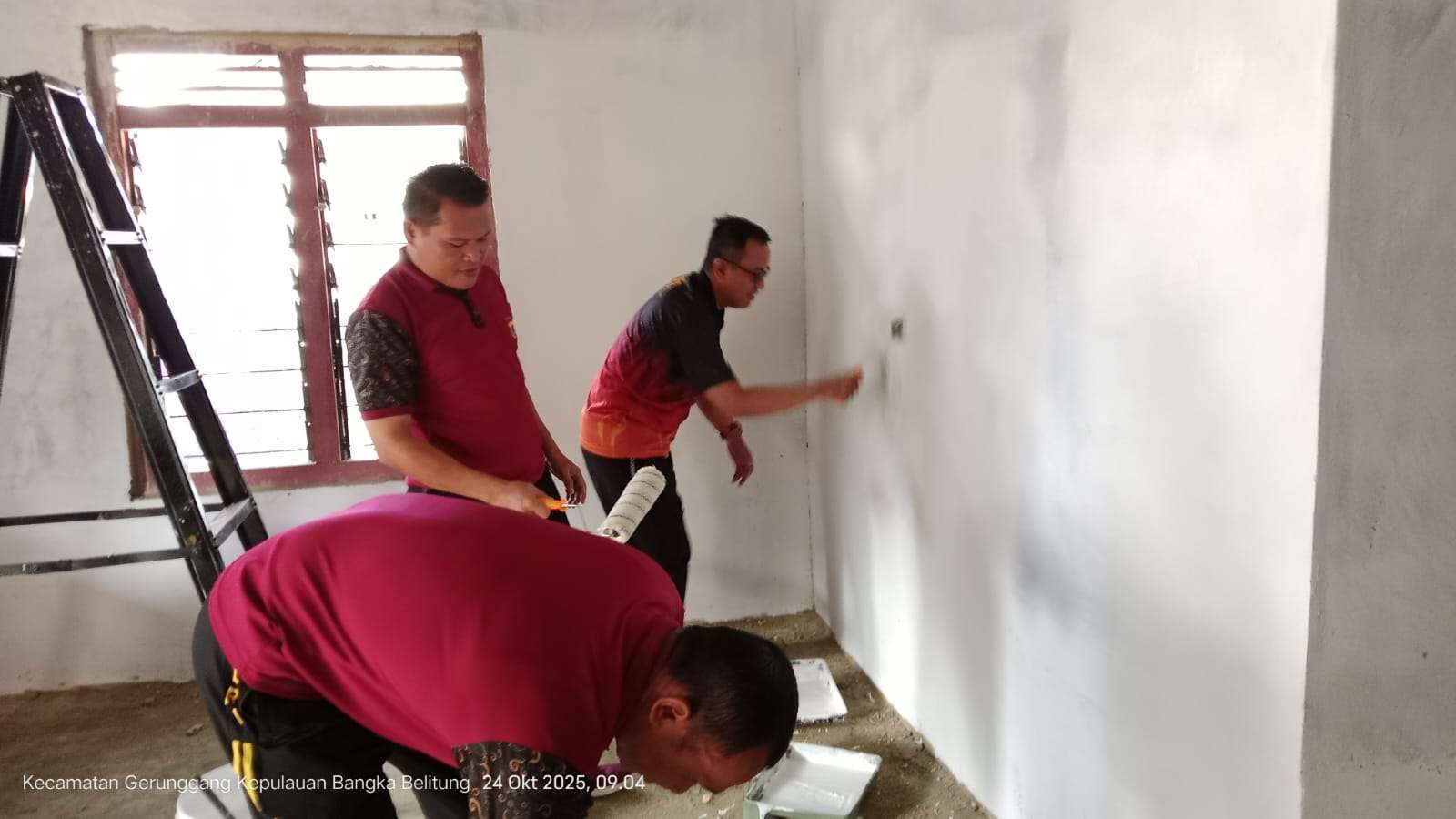 PANGKALPINANG – Kapolresta Pangkalpinang, Kombes Pol Max Mariners, turun langsung mengecat rumah Yati (73), warga Kelurahan Tua Tunu Indah, Kecamatan Gerunggang, Jumat pagi, (24/10/2025). Rumah yang hampir rampung pembangunannya itu adalah program anyar Polresta Pangkalpinang berupa perbaikan rumah tidak layak huni menjadi rumah idaman.