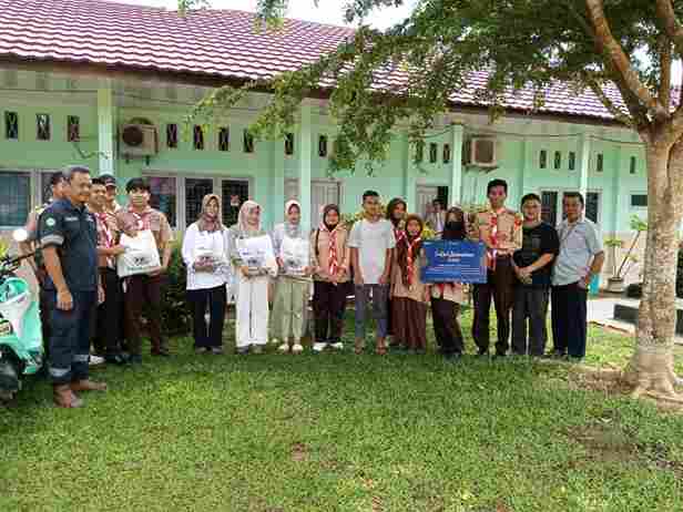Anggota holding Industri Pertambangan MIND ID menyerahkan puluhan paket sembako kepada Rohis SMA Negeri Simpang Teritip yang nantinya akan didistribusikan kepada masyarakat. Kegiatan kali ini adalah yang keempat kalinya dilakukan PT Timah bersama Rohis SMA Negeri Simpang Teritip.