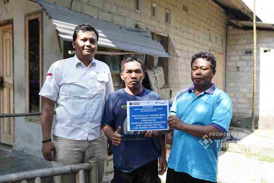 Kali ini, PT Timah menyerahkan bantuan untuk nelayan yang tergabung dalam Koperasi Tanjung Gunung Sejahtera, Desa Tanjung Gunung, Kabupaten Bangka Tengah untuk menambah peralatan tangkap nelayan yang dibutuhkan nelayan.