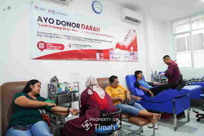PANGKALPINANG — PT TIMAH Tbk kembali menunjukkan komitmennya dalam mendukung kegiatan sosial kemasyarakatan dengan mendukung kegiatan donor darah rutin tahunan yang diselenggarakan oleh Keluarga Alumni Universitas Gadjah Mada (Kagama) Provinsi Kepulauan Bangka Belitung bekerja sama dengan UTD PMI Pangkalpinang.