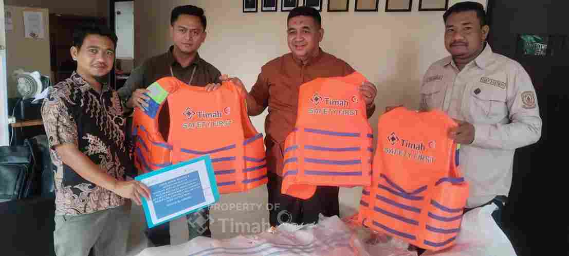PT Timah Tbk berkolaborasi Cabang Dinas Kelautan dan Perikanan Provinsi Kepulauan Riau di Karimun memberikan bantuan 80 pacs life jacket yang akan didistribusikan kepada nelayan yang ada Kabupaten Karimun diantaranya nelayan di Kundur Barat, Ranggam dan Leho.